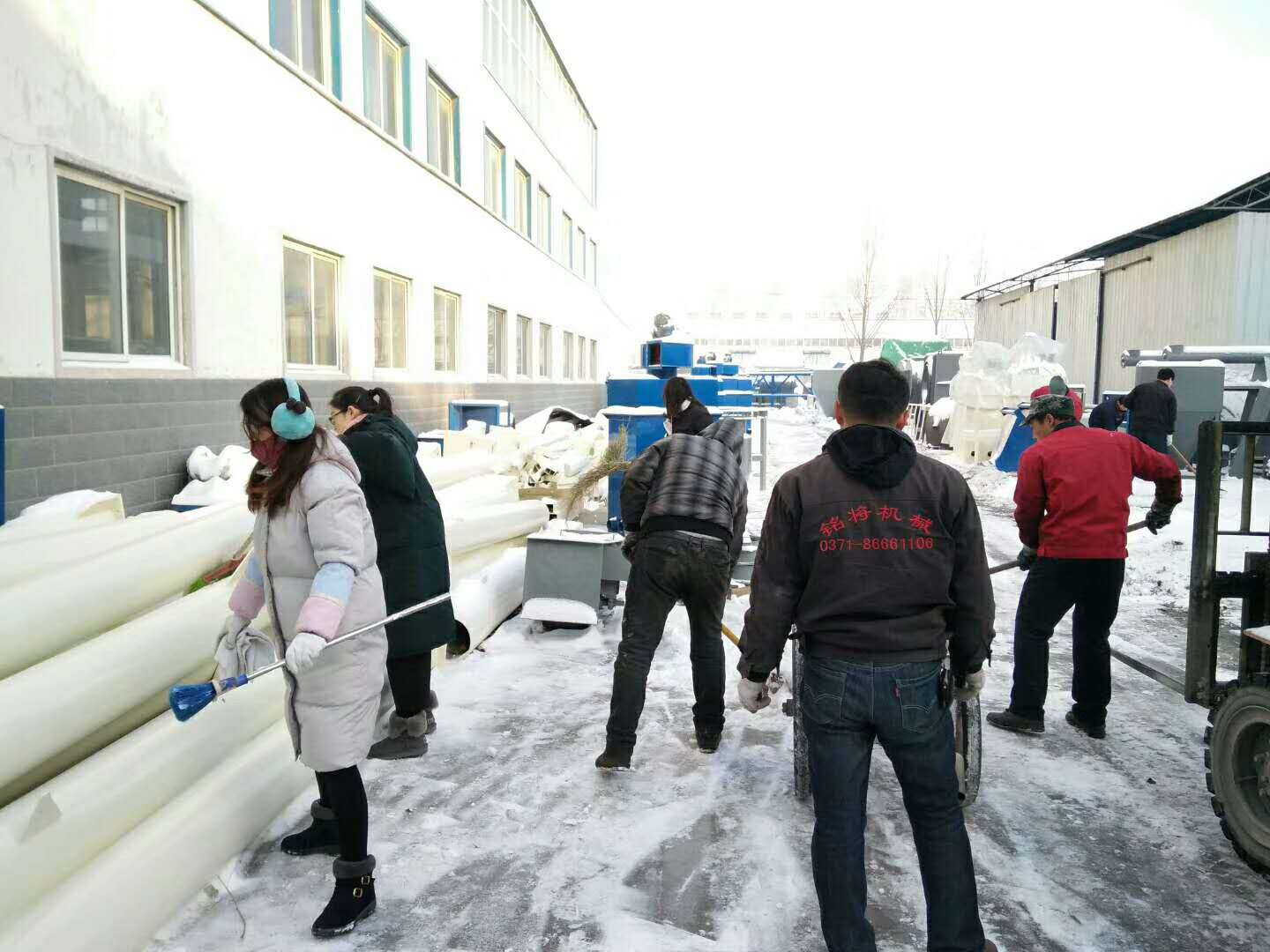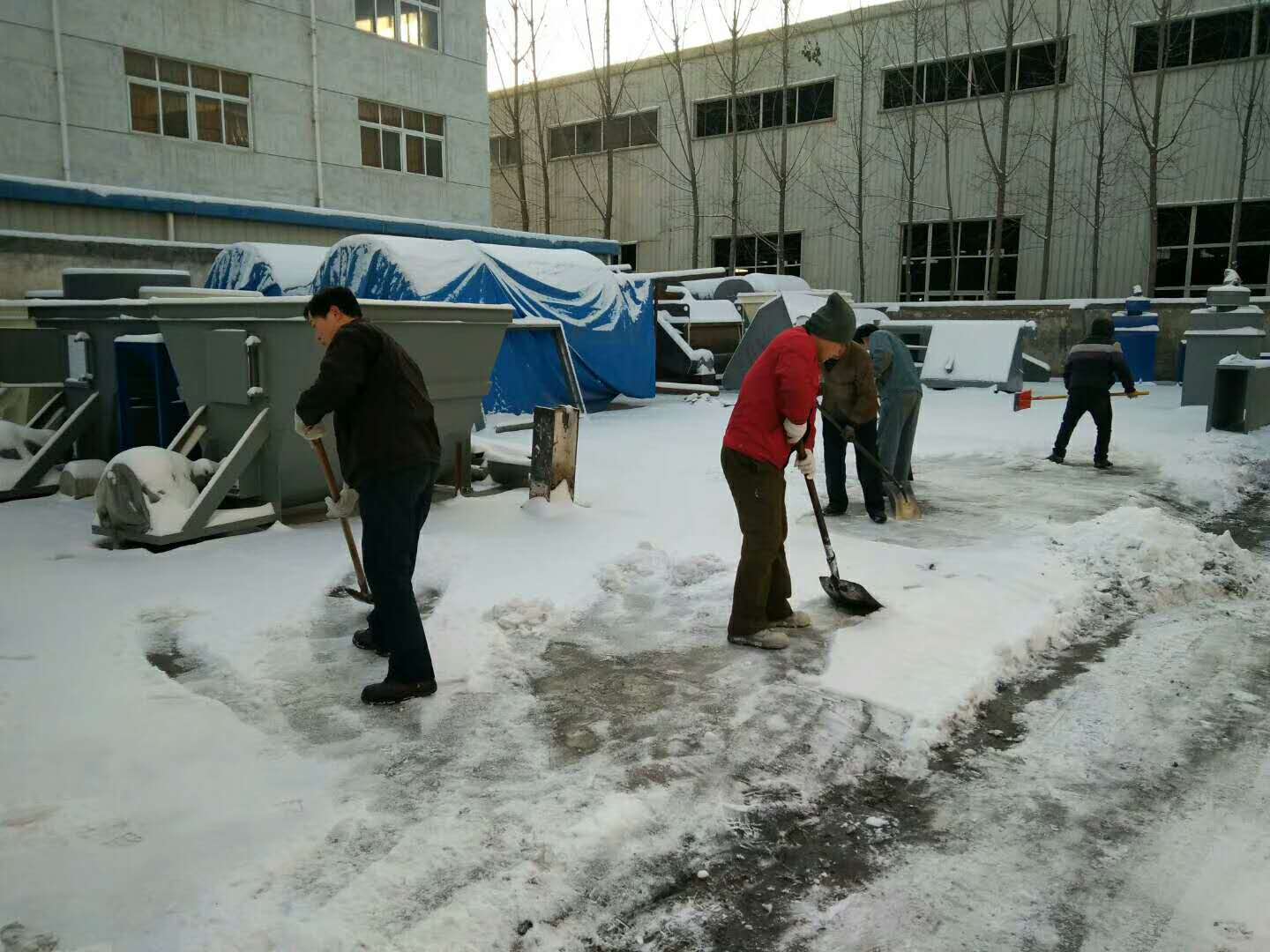 这场雪持续一天一夜,整装待发的设备上盖着厚厚的一层雪,为了不耽误客户的工期,正常发货,一大清早铭将全体员工集体出动,清扫设备上的雪,大家不怕严寒,始终饱含工作热情和高昂的斗志,有力的为塞尔维亚的正常发货做好准备。