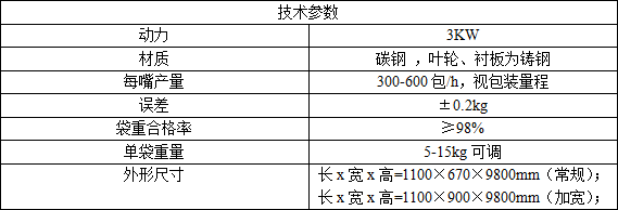 MGX-515型小剂量定量包装机一种集微电脑控制、称重传感、螺旋传动、气动执行于一体的高新技术小剂量包装设备。包装量程通常为5-15Kg。通过变频器的控制,该机可实现物料的快加慢加功能,计量精准,操控便捷,运行可靠,占地小,无噪音。全封闭式物料输送回路,加上独特的收尘口设计,确保物料包装过程安全环保无泄漏,达到绿色生产、生态生产新标准。该机适用于包装流动性一般的粉体或细颗粒物料,如:化工粉剂、食品粉剂、淀粉、饲料、肥料粉剂、粉粒状添加剂等物料。技术参数: